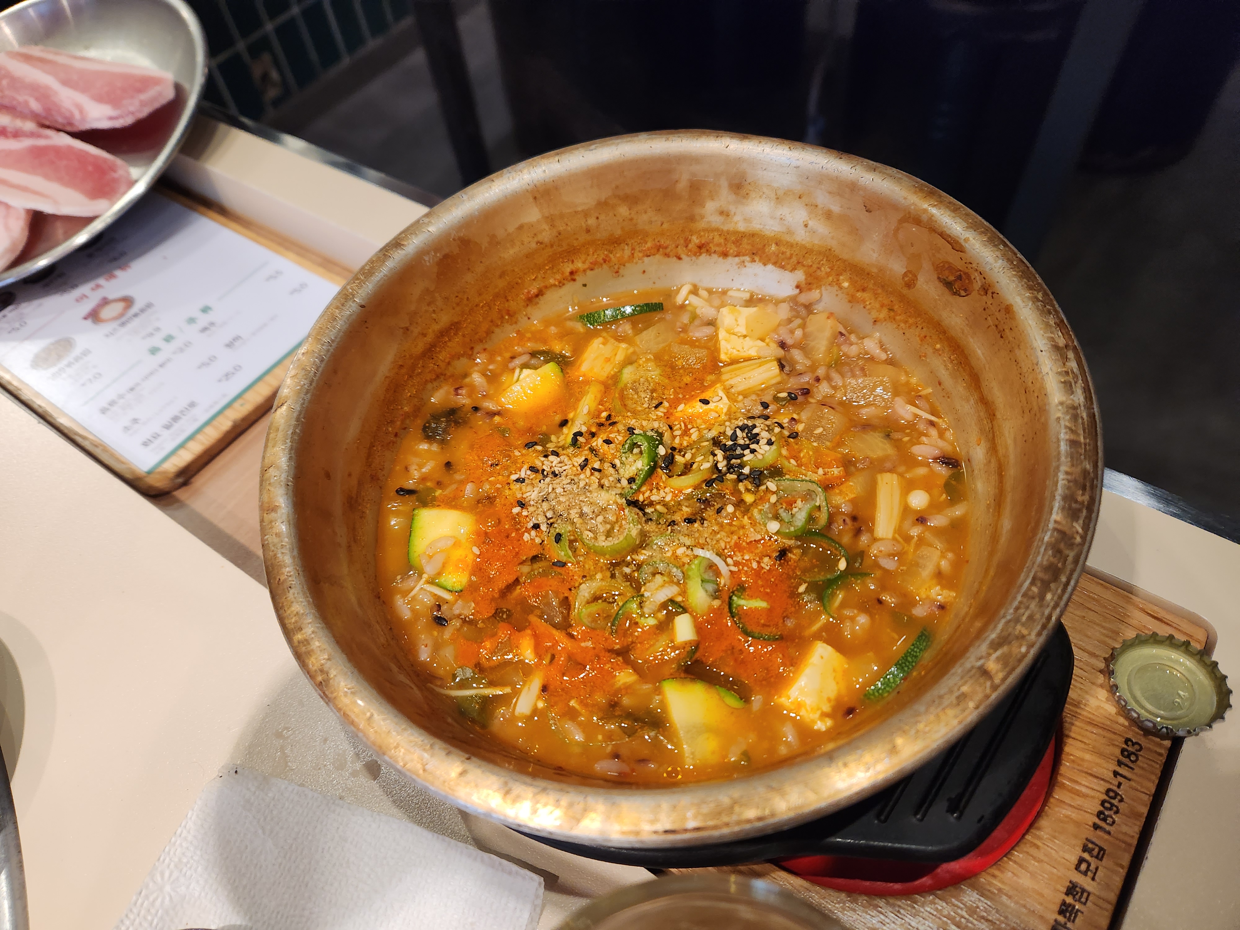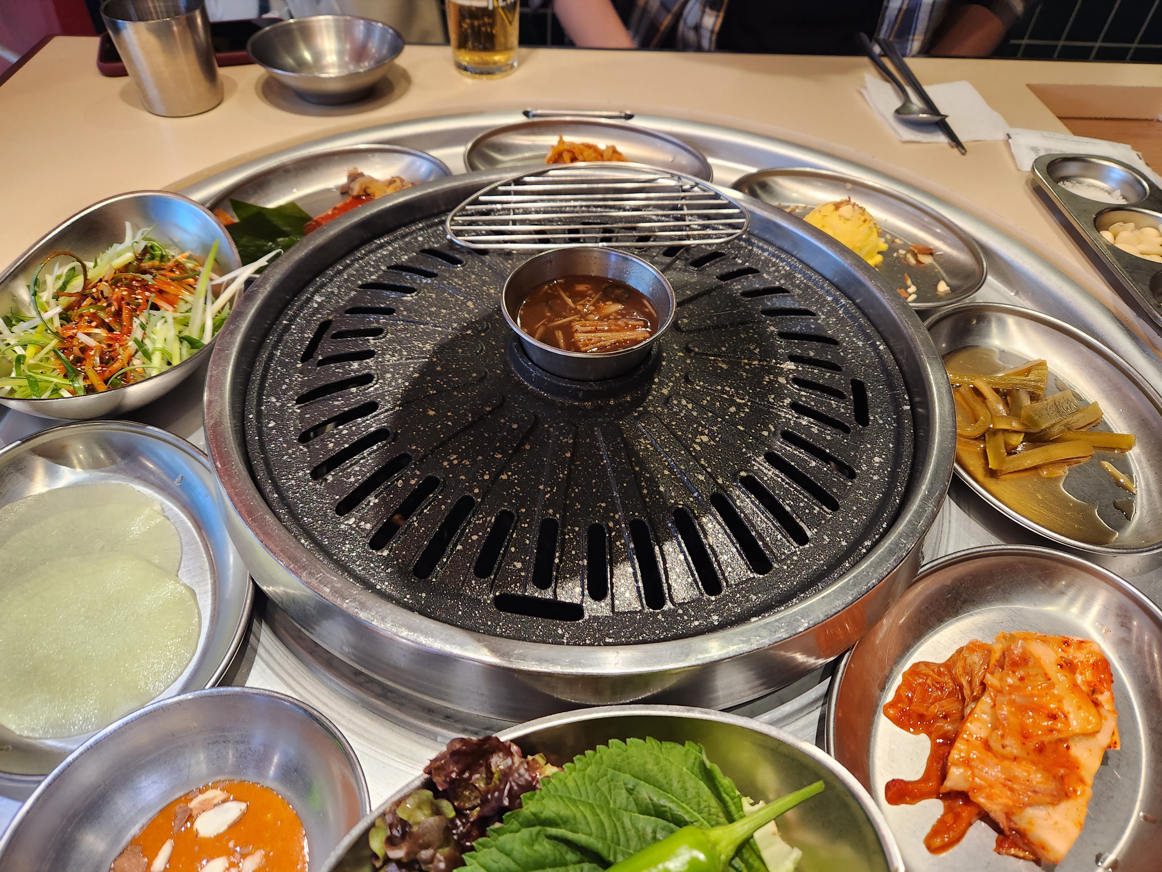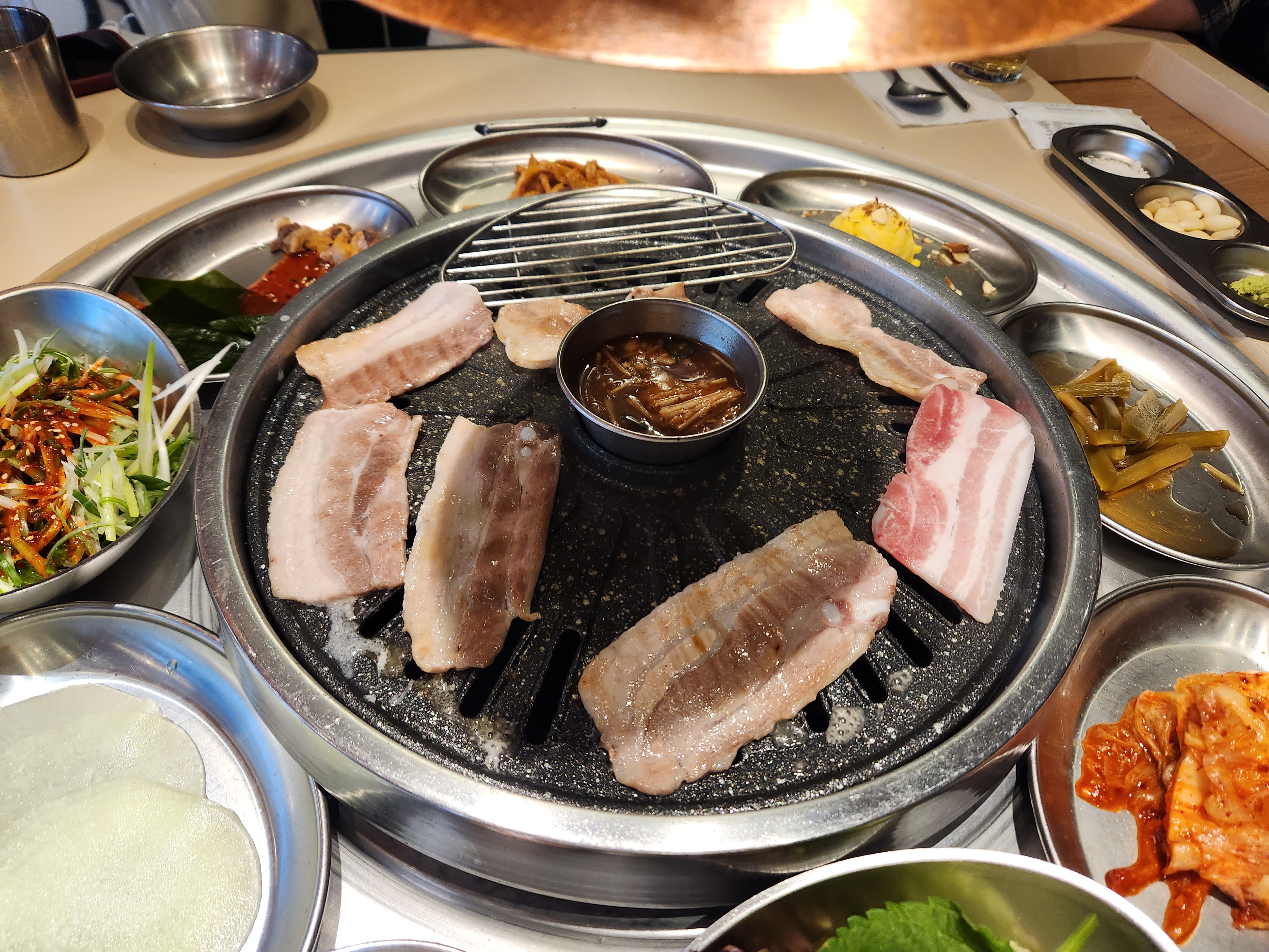 이렇게 불판 가운데에는 멜젓을 놓아줍니다.