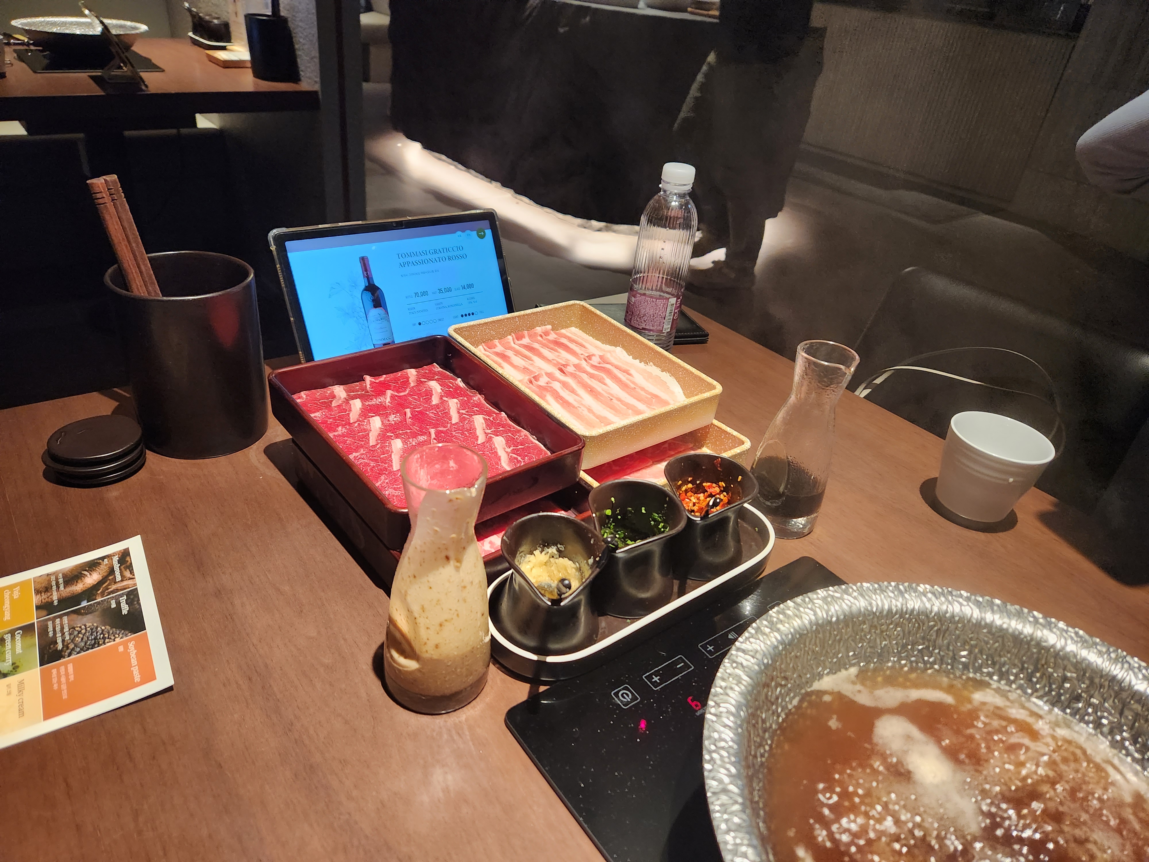 근데 이거 진짜 너무 맛있어요... 샤브샤브를 트러플소금에 처음 찍어먹는데 진짜 너무 맛있어서 고기가 쭉쭉 들어갑니다.